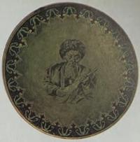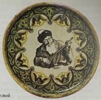 Чаще всего обращались к образу Джамбула и его поэзии художники-керамис­ты. В Государственном музее искусств КазССР им. А. Кастеева хранится блюде 1936 года с портретом акына, 'подписанное К. Ибрагимовым. Композиционное решение настенного декоративного блюда - плоские узкие борта, с казахским национальным орнаментом, и портрет в центре - станет типичным для более поздних произведений такого рода.