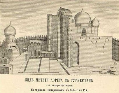Мечеть Азрета имеет в крае весьма важное в религиозном отношении значение. Мусульмане (сунитского толка) считают ее священным храмом, в который, до взятия русскими Туркестана, говорят, стекались богомольцы со всех мест Азии. П