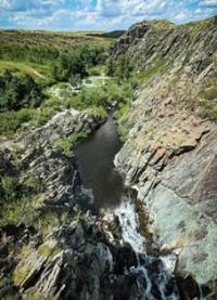 Здесь преобладают степные ландшафты, прорезанные балками и долинами малых рек, где внезапно открываются скальные выходы и каскады воды. Небольшой по высоте, водопад привлекает не столько мощью потока, сколько гармоничным сочетанием камня, воды и степной тишины.