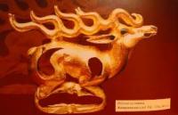 Среди многочисленных золотых находок там была обнаружена золотая диадема с изображением зверей, птиц, людей в переплетении сложного растительного орнамента. Здесь и марал с маралихой, а между ними летящая птица, и крадущийся крылатый тигр, на спине которого сидит человек, и бегущий дракон с наездником на спине, и крылатый конь.