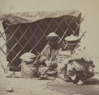 from Turkestan album. Published in 1872 in St. Petersburg, by order of the first Tashkent Governor-General Konstantin Petrovich von Kaufman. The album included four parts: the archaeological (two volumes), the ethnographic (two volumes), the crafts of the peoples of Central Asia (the trade) and the historical part. The number of photos is more than 1200. Compiled by A. L. Kuhn (1871 - 1872). The collection of materials for a multi-volume publication for more than two years was carried out in the military topographic department of Tashkent, where lithographic parts of each plate were printed. A complete set of all volumes and parts of this book is stored today only in three collections: in the National Library of Uzbekistan in Tashkent, in the V. Lenin State Library in Moscow and in the Library of the US Congress in Washington. Each of the six volumes of the Turkestan Album is a huge folio, upholstered in green leather, 45 by 60 centimeters in size. Each page of the publication contains from one to eight photos, made with the technology of albumen printing (based on egg white). In 2007, the National Library of Congress completed the full digitization of all pages of the Turkestan Album.