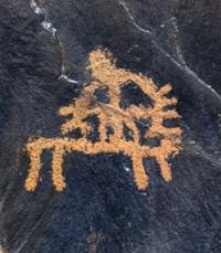 Аналогия этим рисункам в большом количестве имеются в петроглифах Монголии. Объектами охоты являются олень (?), бык и козел, причем от головы одного из копытных животных (быка?) идет замкнутая линия, образующая под прямоугольную фигуру.