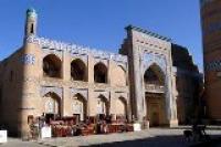 The mosque occupies the southeastern sector of madrassah. Its low heavy dome balances a vertical ofthe minaret. Majolica and carved ganch decorate mihrab niche ofthe mosque. Islam Кhodja was Asfandiar Кhan's grand vizier and father in law, and the khanate's last and mayby only great progressive.
