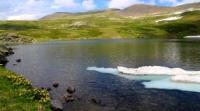 The moraine Third Holzun Lake is located at an altitude of 2140 meters above sea level in the Ridder District of the East Kazakhstan Region and is 500 meters from the Second Kholzun Lake. This lake is located on a terrace on the north side of the western spur, which extends from the Kholzun ridge.