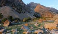 The snow-toothed crown of the Great Hansa overshadows Lake Iskanderkul from afar. A more extensive view of the Greater and Lesser Hansa, as well as a significant part of the Eastern Fany Range, opens from the slopes of the Dvoynoy Pass.