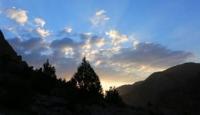 There are three unique lakes in the Chukurak gorge. The lowest lake (Chukurak) is located above the mouth of the gorge, which blocks the exit to the north. Here, at the foot of a grandiose rocky bastion, under the slopes densely overgrown with dark green juniper, an oblong lake, greenish in the daytime and blue in the evening, is finely crushed under a weak breath of a gentle breeze.