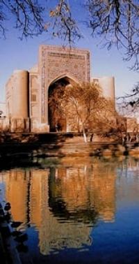 Now almost everything on show is for sale. Between the pool and the madrasa, in the middle of a small formal garden, there is a modern statue commemorating the 1000th birthday of an ancient 'wise fool'- Khodja Nasreddin was a Robin Hood character who starred in countless Sufi children s stories and was loved by Soviet mythologists for his instinct for the redistribution of wealth by direct action.