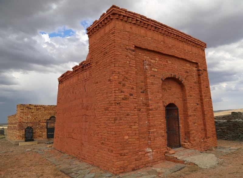 The mausoleum dates back to the 19th century and is made of red brick.