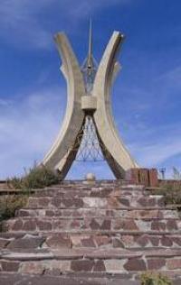Practices of such veneration date back to one of the most ancient sacred rituals of worshiping the world peak. From the point of view of modern memorial culture, the Ulytau memorial-landscape complex begins on the main square of the village of the same name, the regional center of Ulytau, where a memorial to the Kazakh khans, Khan Ordasy, was erected in honor of the 550th anniversary of the Kazakh Khanate. This is a monument to the khan who sits on the throne on a "white" nightmare.