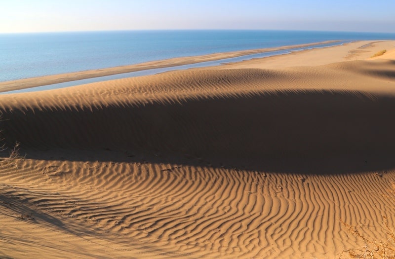 Это одно из лучших побережий Каспийского моря в Казахстане где сочетание голубого цвета воды и желтого песка, как нельзя лучше гармонирует в природе.