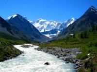 With water level raising by 37 meters the Lake becomes running, that means that the water flows to Kokuibelsu valley, and then to Pyandge. Karakulsky hollow is surrounded by high mountains with glaciers which reach high-altitude points of 5000 - 5900 meters.