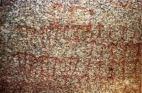 Head barely outlined, short arms shown rudimentary. There are either no legs at all, or they are short and widely spaced. Anthropomorphic images are included in a multi-figure five-row, linear composition and possibly reflects some kind of ritual action involving a large number of people.