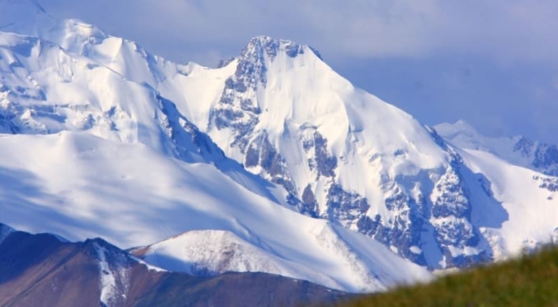 At the confluence of the Northern Inylchek glacier and South Inychek glaciers, there is a high-mountain lake Mertsbakher. located at an altitude of 3321 meters above sea level. The ridge is composed of metamorphic schists, marbled limestones, and granites.