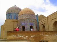 By the 1370s, the mausoleum of some noble woman (1361) and Khodja-Ahmad's mausoleum had been erected to the north from the necropolis. At Amir Temur, Khorezm masters participated in majolica decoration of the Kusam ibn Abbas mausoleum.