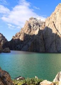 Lake Kel-Suu is one of Kyrgyzstan's most picturesque high-mountain lakes. A natural isthmus offers panoramic views of the lake, surrounded by majestic cliffs several hundred meters high, featuring waterfalls, rocky islands, bays, and various caves. The lake's waters, shimmering in turquoise, are framed by steep peaks that remain snow-covered even in summer.