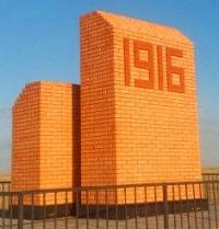 In the upper part of the high stele, the figures “1916” are laid out with facing bricks, indicating the date of the battle that took place near Lake Tatyr. The territory around the foot of the stelae is paved with paving slabs, the monument is fenced with a metal fence.