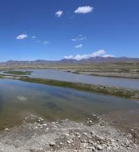 «Путь пролегает по высокому плато вдоль левого берега реки Арабель притока Кумтера, с севера выдавались над плато снежные вершины хребта Теректей-тау, но выдавались мало, так как самое плато лежит на абсолютной высоте более 3500 метров, и представляет высокую ступень над долиной Иссыккуля, куда падают северные склоны хребта.»