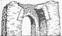 В закрытом углу треугольника увидите непривычного вида поседевшее каменное здание. Оно представляет четырехугольник с плоским верхом, в средине которого сидит, в виде колпака, грубый полуразвалившийся купол. Во внутренность здания ведет единственный, довольно высокий сводчатый вход, окон нет никаких.