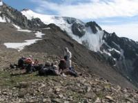 Завтрак. Рано утром радиальная прогулка к подножию хребта Заилийского Алатау и далее на ледник Шнитникова, затем и восхождение на пик Тур высотой 4205 метров над уровнем моря, расположенный в главном хребте Заилийского Алатау, по снежно-ледовому склону. Обед в пути. Вечером возвращение в лагерь, ужин, ночлег в палатках.