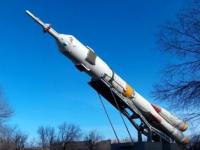 Visit of the rocket "Union" (full size). The monument is established to the 25 anniversary of formation of the spaceport in 1980. Rockets carriers "Union" were used for removal into an orbit of Earth of the piloted "Union" spaceships and automatic spacecrafts of the Space series.