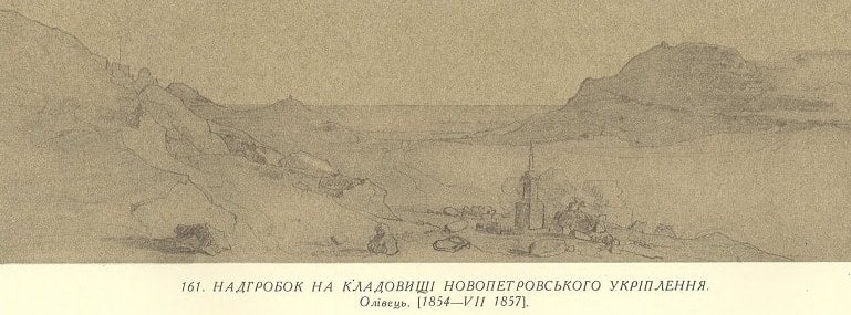 На рисунке Т. Шевченко запечатлено захоронение 1852 года, принадлежавшее коменданту Новопетровского укрепления Антону Маевскому, предшественнику Г.Ускова. Комендант оказывал ссыльному художнику всевозможную помощь и поддержку.