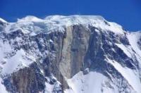 Снежную вершину с запада украшает километровая стена из черного и желтого мрамора, с нависающей сверху огромной ледовой шапкой.