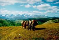 Hiking: the sawmill - Nizhnee sedlo pass height is 1970 subway above sea level the lake Karakus (7 km). After sawmill the track goes for rise. A lunch in way. Our track goes along the Russian border which is from us the northwest. Soon the boggy glade about 3 kilometers long begins. It is a little more time in way and before us the picturesque panorama of the lake Karakus will open. We pass 2 more kilometers above the lake Karakus and we stop on a overnight, a dinner and overnight in the tents.