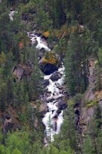 Водопад образует безымянный ручей, ручей берет начало из трех небольших моренных озера, расположенных каскадом, на высоте 2265 м. н. у. м. Обед в беседке на берегу озера.